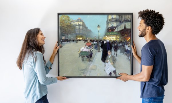 With his paintings depicting everyday life in Paris around the 20th century, the Austrian-born Frenchman Luigi Aloys-Francois-Joseph Loir became famous throughout Europe. As his parents worked as valets and governesses, young Luigi spent his childhood in the household of the French royal family at Görritz Castle. After that, the Loir family lived together in the Duchy of Parma. But when his parents and sisters moved back to their native France, fifteen-year-old Luigi decided to study painting at the Parma Academy of Art and stayed behind on his own. Finally, three years later, he too moved to Paris, among other reasons to be with his father, who had fallen ill in the meantime. In Paris, Loir's promising passion for city painting began. Together with his Paris art teacher Jean-Aimable Amédée Pastelot, Loir worked for French caricature magazines, which were particularly popular at the time. Pastelot specialized mainly in flower and portrait painting in gouache and watercolor. In his studio, the young artist Loir felt encouraged to try different art forms. Among other things, he designed theater costumes, engaged in decorative painting, and submitted illustrations for novels. Despite his love of experimentation, it soon became apparent that his favorite pastime was to realistically depict the many activities and scenes of the Parisian streets. Seeking inspiration, the young Loir walked the neighborhoods, studying the architecture, lighting conditions, and city dwellers.