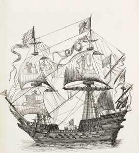 Embarkment of the Knights of the Holy Spirit for the Crusade - based on miniature of the 14th century, in 'Military and religious life in the Middle Ages and in the Renaissance era' by Paul Lacroix, Paris