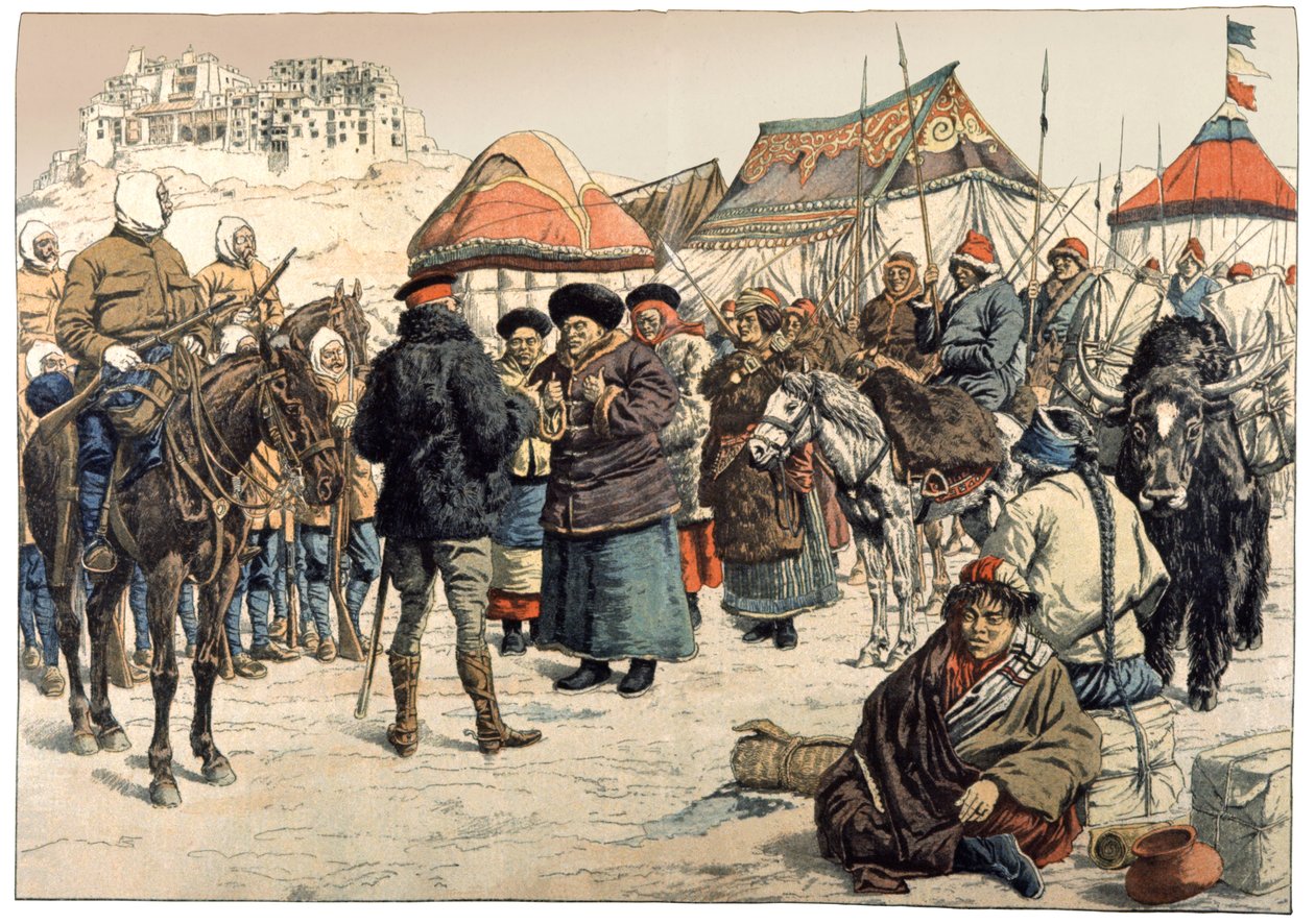 20th century · 20 century · xx century · xxth century · twentieth century · 20 20th xx xxth twentieth century · 20 20th xx xxth century · 20 20th 20th xx xxth 20th century · c20th · england · english · great britain · british · britain · united kingdom · europe · european · europen · 1900s · 1900's · army · troops · armed forces · asia · asian · asians · colonialism · colonisation · colonizer · colonialist · colonist · colonists · colonization · crowd · crowded · crowds · group of persons · france · french · france french · european union · engraving · engraver · history · historic · invasion · soldier · soldiers · military · population · inhabitant · people · ethnicity · ethnography · street scene · street view · tibet · cityscape · view of a city · · Private Collection / Bridgeman Images |