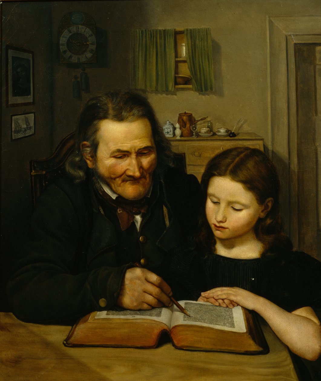 Old Man Teaching Girl to Read(Old man teach girl to read)Adolph Tidemand |