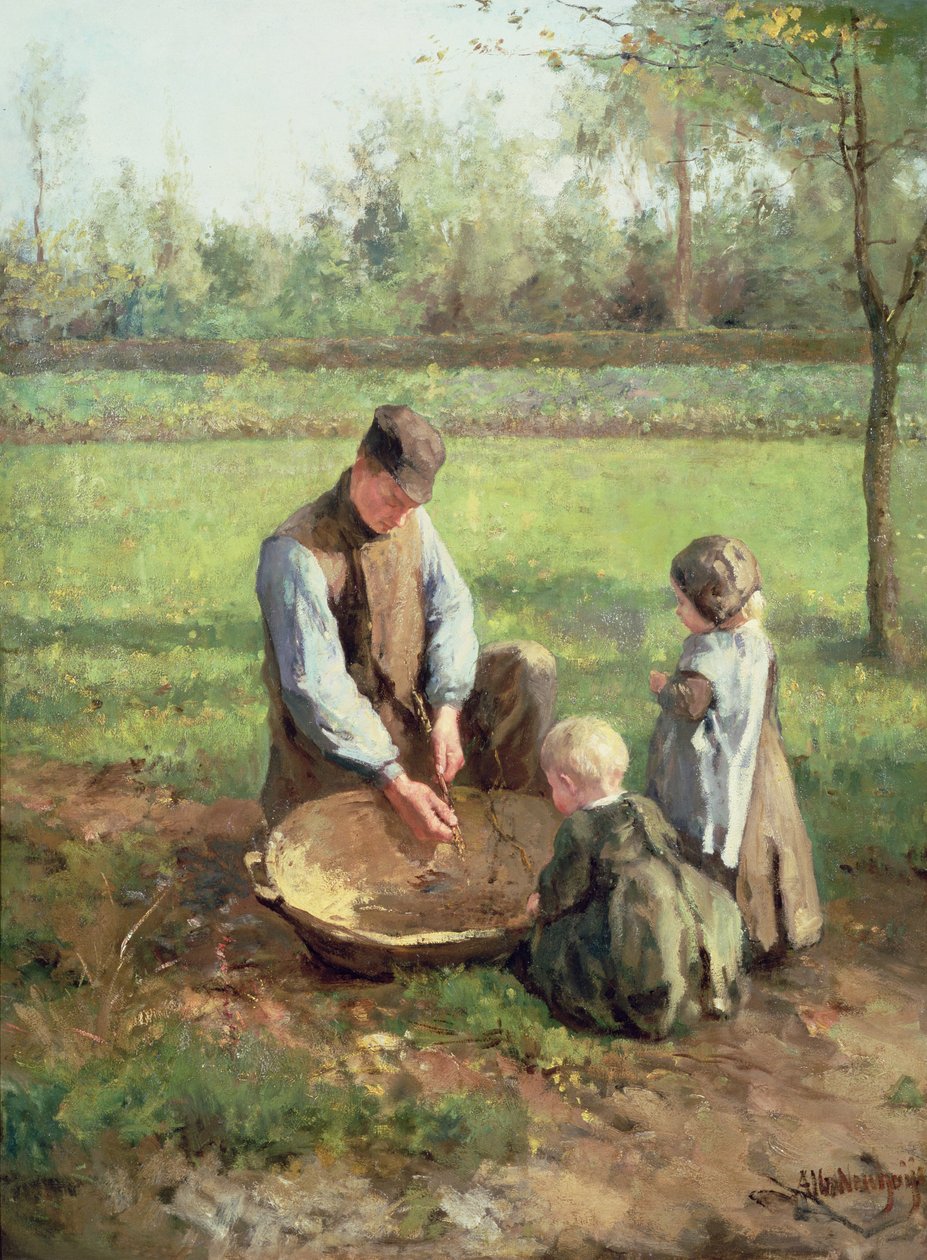 children · fatherhood · peasant · worker · rural · working · c19th · c20th · neuhuijs · Private Collection / Bridgeman Images |