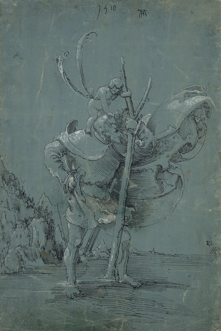 Saint Christopher(Saint Christopher, 1510 (pen and black ink with white pencil on green blue paper))Albrecht Altdorfer |
