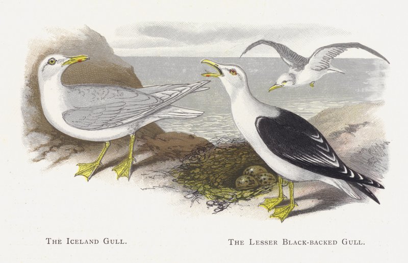 birds · iceland gull · lesser black · england · britain · british · ornithology · backed · gull · bird · english · Private Collection / Bridgeman Images · / Look and Learn |