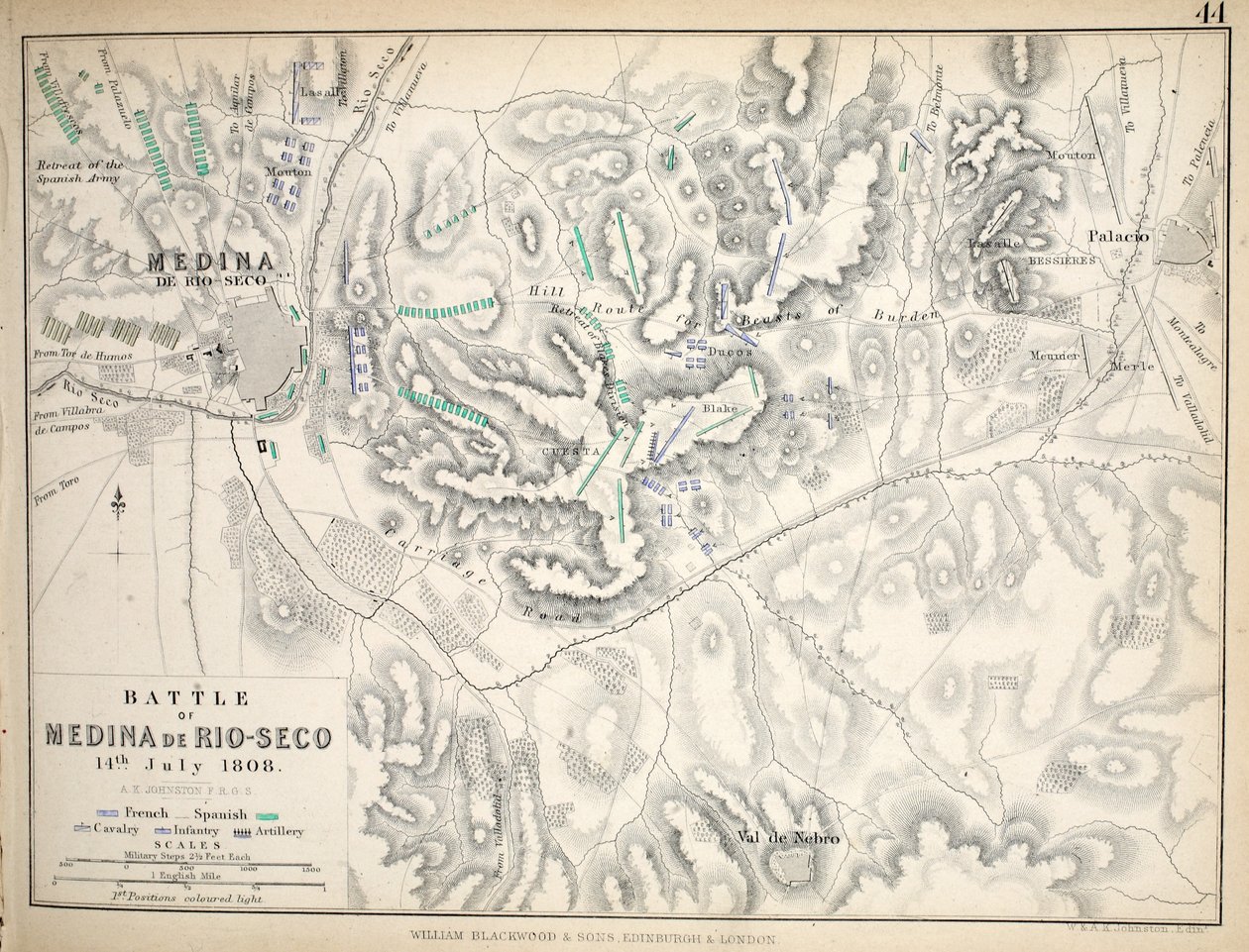 Map of the Battle of Medina de Rio-Seco, published by William Blackwood and Sons, Edinburgh and London(Map of the Battle of Medina de Rio-Seco, published by William Blackwood and Sons, Edinburgh und London, 1848 (hand-coloured engraving))Alexander Keith Johnston |