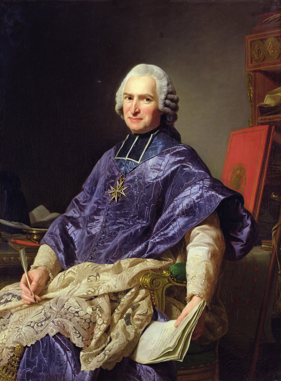 male · portrait · seated · minister · robes · quill pen · letter · statesman · reformer · economist · economy · priest · innovator · abbot · Château de Versailles, France / Bridgeman Images