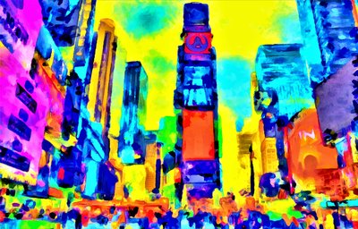21st century · contemporary art · colour · decoration · building · painting · cityscape · balstudio · 2020s · contemporary artist · balstudio · painting · mixed media · town · people · architecture · street · expressionism · impressionism · modernism · pink · green · blue · yellow · Private Collection / Bridgeman Images