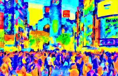 21st century · contemporary art · colour · decoration · building · painting · cityscape · balstudio · 2020s · contemporary artist · balstudio · paiting · mixed media · peoples · expressionsim · impressionism · modernism · yellow · blue · pink · Private Collection / Bridgeman Images