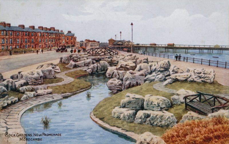 postcard · view · picturesque · rock gardens · new promenade · morecambe · Private Collection / Bridgeman Images · / Look and Learn |
