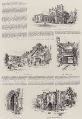 rambling sketches · winchester · city cross · close gate · stoke bridge · st swithins church · deanery · cathedral · west gate · architecture · places of worship · city gates · hampshire · Private Collection / Bridgeman Images · / Look and Learn |