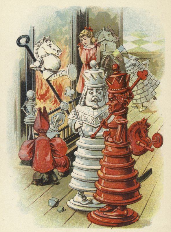 through the looking glass · sequel · alice · wonderland · lewis carroll · english literature · children · girl · story · fantasy · in looking-glass house · chess · game · board · games · Private Collection / Bridgeman Images · / Look and Learn |