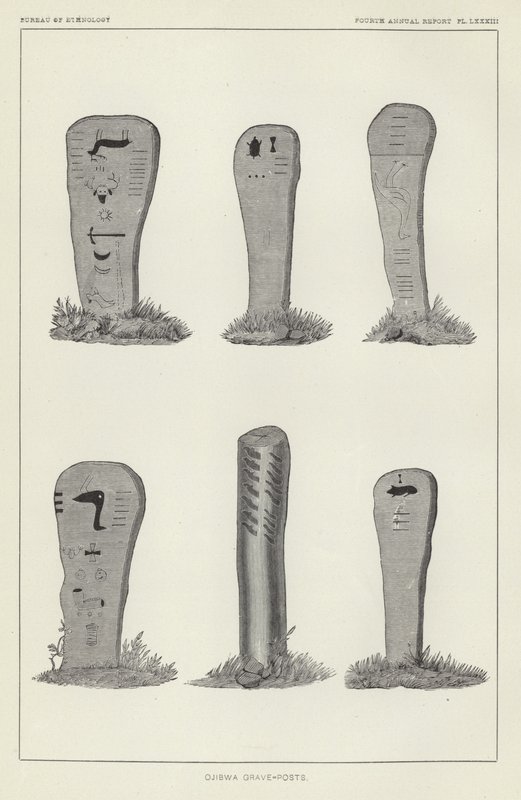 19th century · america · american · american indian · american indians · american native indians · anthropology · burial · chippewa · chippeway · commemorative · dead · death · engraving · engravings · ethnographic · ethnology · grave · grave posts · grave-posts · graves · historical · illustration · illustrations · indian · indians · indigenous · memorial · native american · native americans · native · peoples · north america · north american · ojibwa · ojibway · ojibwe · pictogram · pictogramme · pictograph · pictographs · picture · pictures · post · posts · social · history · stone · symbol · symbols · tribal · tribe · tribes · writing · Private Collection / Bridgeman Images · / Look and Learn |