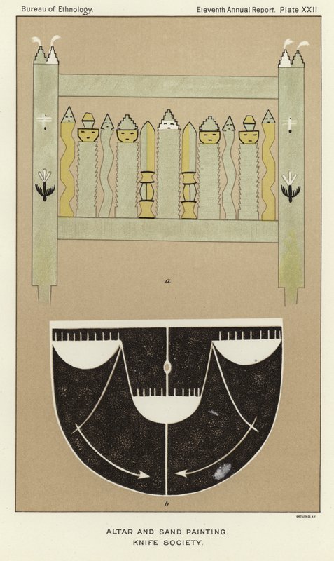 19th century · america · american · american indian · american indians · american native indians · anthropology · engraving · engravings · ethnographic · ethnology · illustration · illustrations · indian · indians · indigenous · native american · native americans · native · peoples · social · history · tribal · tribe · tribes · altar · sand-painting · sand-paintings · painting · sand · paintings · religion · religious · spiritual · ceremonial · ceremony · ceremonies · knife · society · Private Collection / Bridgeman Images · / Look and Learn |