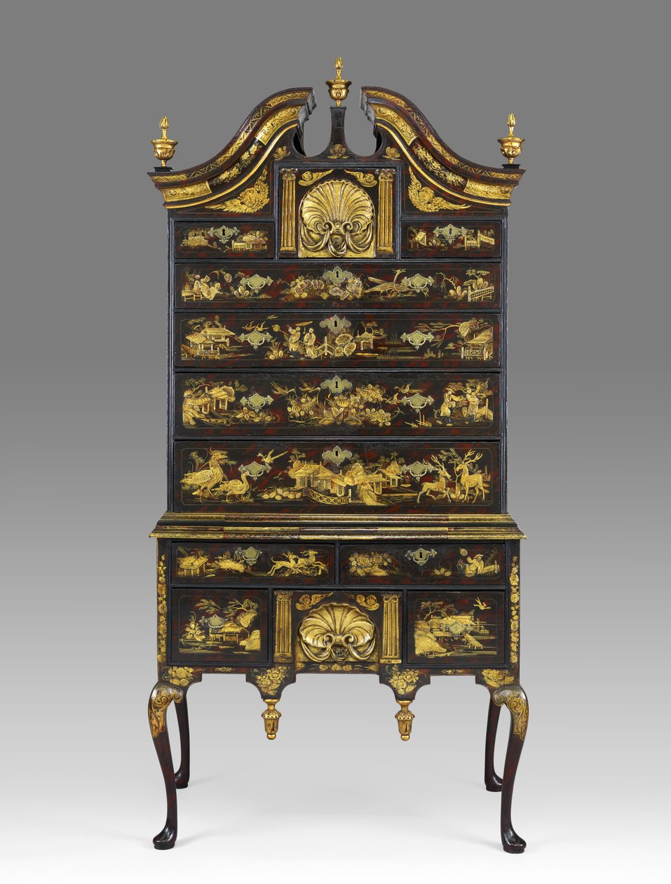drawer · s-curve · cabriole legs · decorated · luxurious · japanned · gold leaf · seashell · landscape · wildlife · Museum of Fine Arts, Houston, Texas, USA / Bridgeman Images |