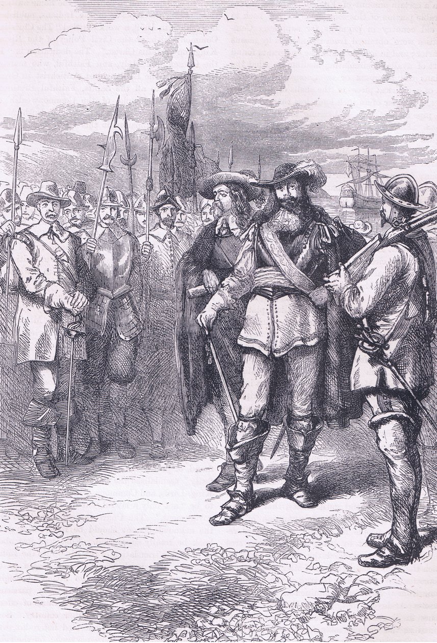 Commissioners landing at Boston 1665, illustration from Cassell's History of the United States pub. by Petter & Galpin c.1890(Commissioners landing at Boston 1665, illustration from Cassells History of the United States pub. by Petter & Galpin c.1890 )American School |