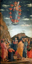 The Ascension (detail)(The Ascension, left hand panel from the Altarpiece, c.1466 (tempera on panel) (see also 50042))Andrea Mantegna |