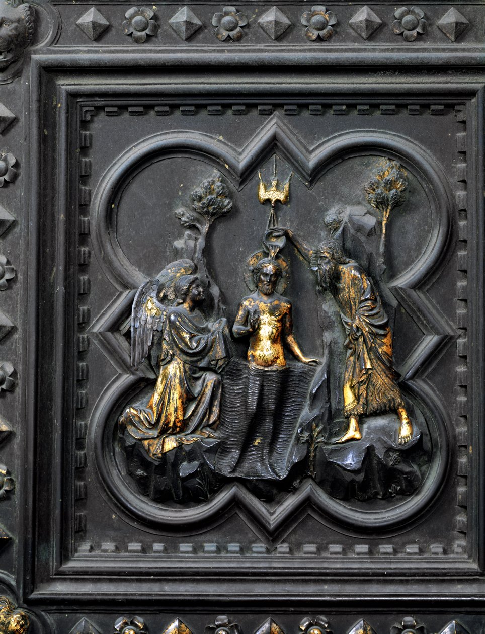 high relief · sculpture · renaissance · john the baptist · jesus · river jordan · holy spirit · archangel · baptising · blessing · purification · Baptistery, Florence, Italy / Bridgeman Images |