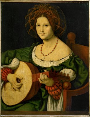 woman · feminine · ladies · women · lady · costume · female · women · musical · lady · stringed · music · half length · playing · seated · portrait · strumming · woman · sitting · instruments · portraits · lutes · lute · fashion · renaissance · instrument · painting · mzpainting · Palazzo Barberini, Gallerie Nazionali Barberini Corsini, Rome, Italy / Bridgeman Images