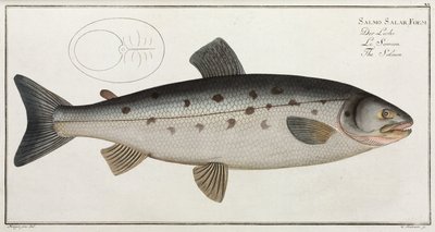Salmon (Salmo Salar) Plate XX from 'Ichthyologie, ou Histoire Naturelle Generale et Particuliere des Poissons', by Marcus Elieser Bloch, Engraved by Gabriel Bodenehr, Published c. 1796(Salmon (Salmo Salar) plate XX from 'Ichthyologie, ou histoire naturelle generale et particuliere des poissons', by Marcus Elieser Bloch (1723-99), engraved by Gabriel Bodenehr (1673-1766), published c)Andreas-Ludwig Kruger |