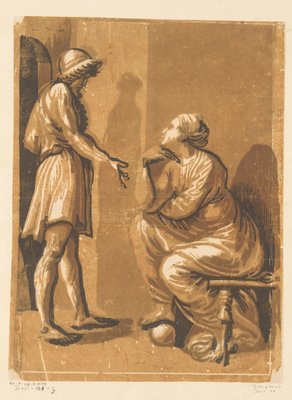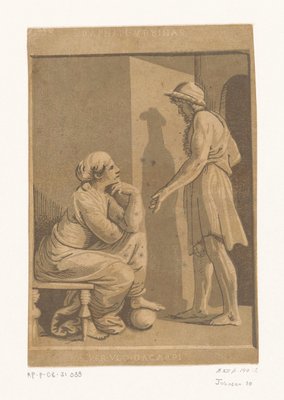Standing Man and Seated Woman Artist Raphael and His Mistress(Staande man en zittende vrouw Kunstenaar Rafaël en zijn maîtresse)Anonymous(print maker),Ugo da Carpi(after print by),Rafaël(after design by) |