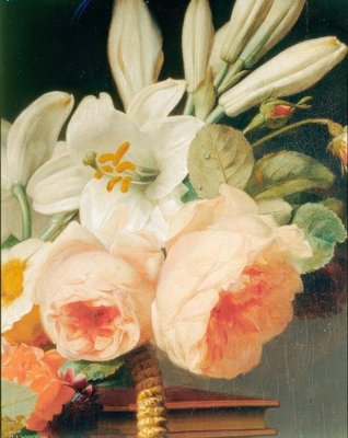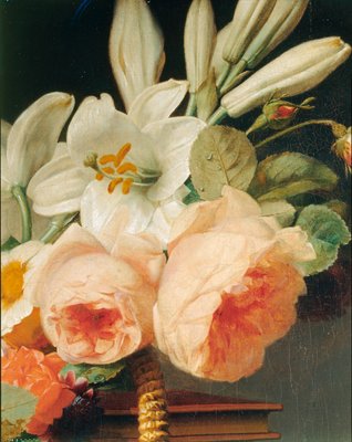 Bouquet of Lilies and Roses in a Basket on a Chiffonniere (Detail)(Blumenstrauß aus Lilien und Rosen in einem Korb auf einer Chiffonniere (Detail))Antoine Berjon |