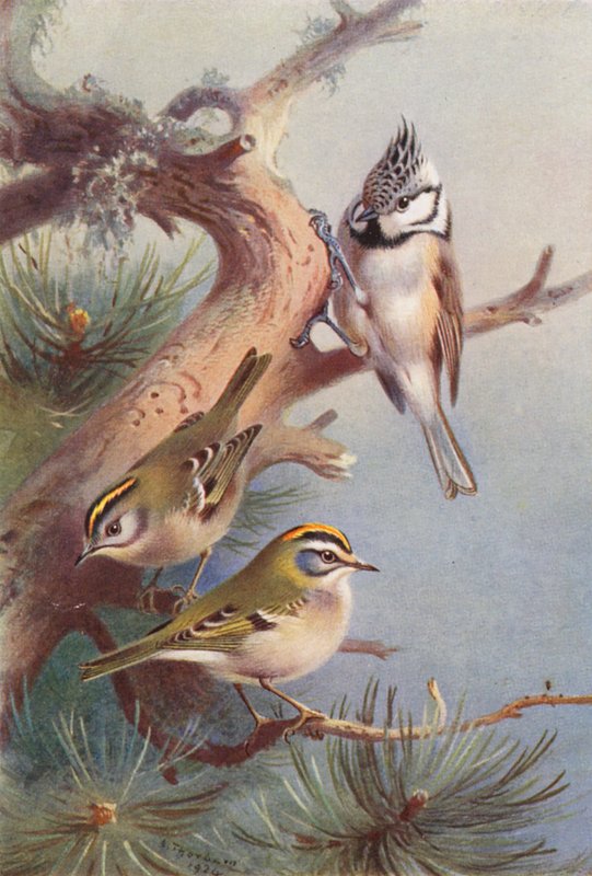Goldcrest, Fire-Crest, Crested Titmouse(Goldcrest, Fire-Crest, Crested Titmouse (colour litho))Archibald Thorburn |
