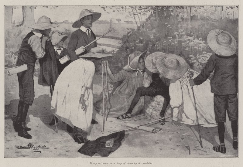 the canterbury pilgrims · e nesbit · denny · heap · stones · roadside · Literary Illustrations · Private Collection / Bridgeman Images · / Look and Learn |