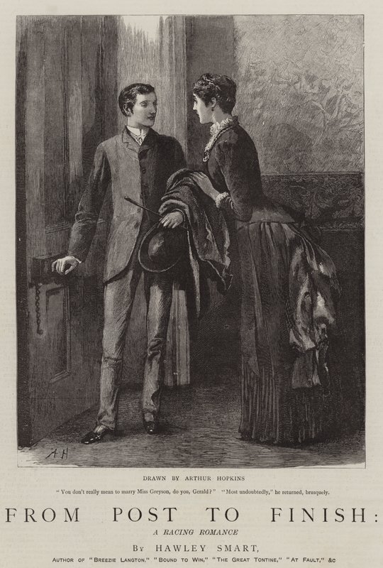 from post · finish · racing romance · hawley smart · marry · miss geryson · gerald · Private Collection / Bridgeman Images · / Look and Learn |