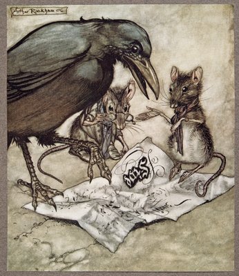 mice · raven · glasses · five pound note · crow · Private Collection / Bridgeman Images