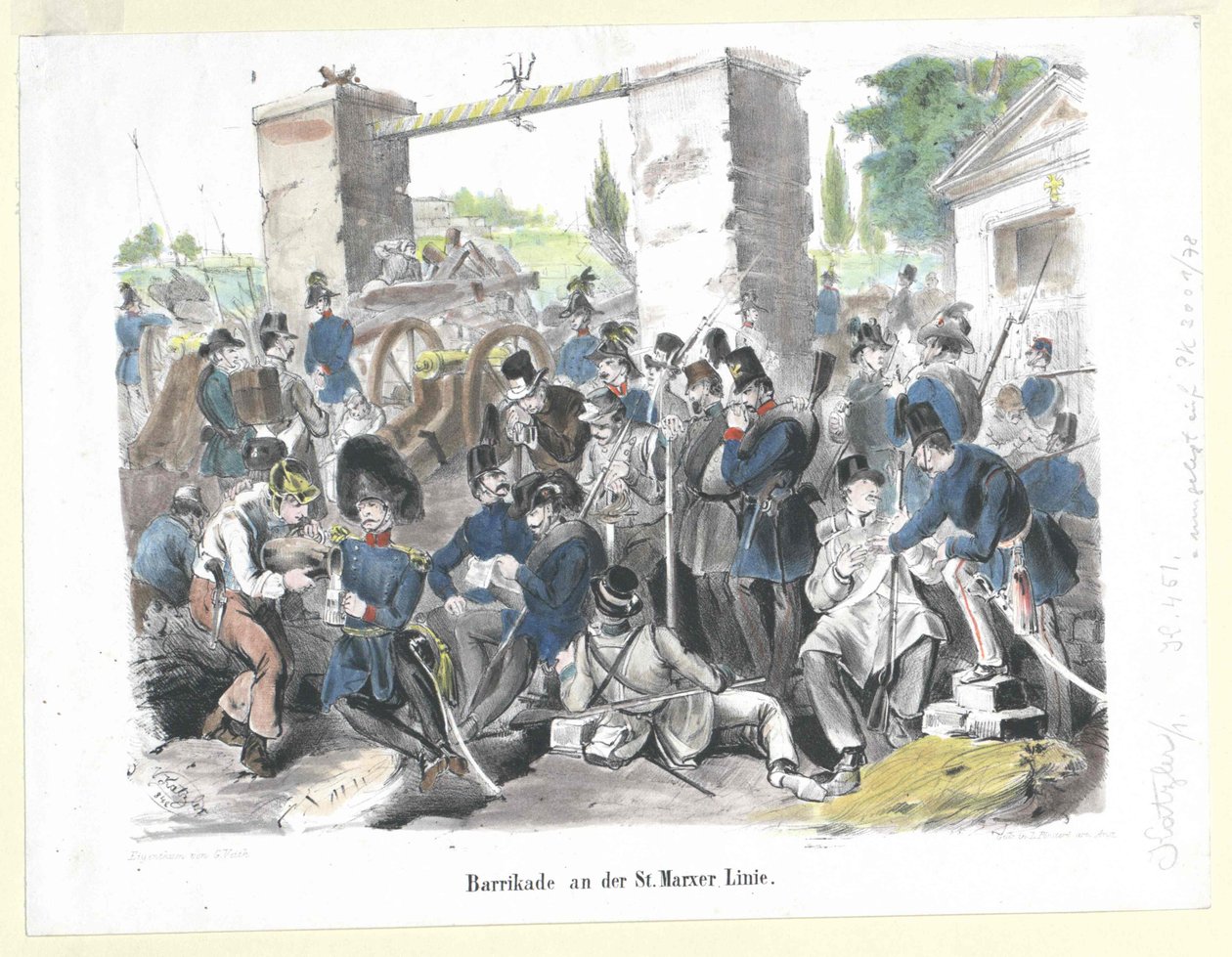 Barricade at the St. Marx Line(Barricade at the St. Marx line)Artist Unknown |