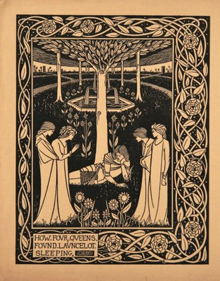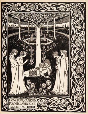 How Four Queens Found Lancelot Sleeping. Illustration to the Book Le Morte d'Arthur by Sir Thomas Malory(How Four Queens Found Lancelot Sleeping. Illustration to the book Le Morte dArthur by Sir Thomas )Aubrey Beardsley |