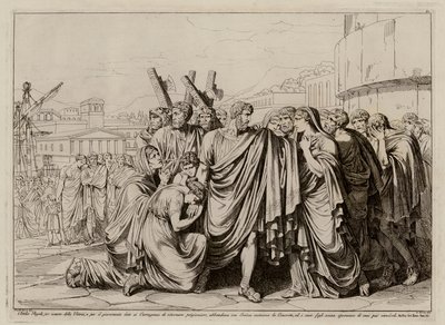 Atilius Regulus preparing to leave Rome to return to captivity in Carthage(Atilius Regulus preparing to leave Rome to return to captivity in Carthage (etching))Bartolomeo Pinelli |