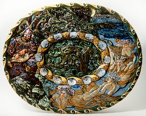 Large oval dish moulded in relief with a grass snake, batrachians and fish(Large oval dish moulded in relief with a grass snake, batrachians and fish (earthenware))Bernard Palissy |