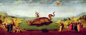 Dragons and other beasts, from 'Le Livre des Merveilles du Monde'(Ms Fr 2810 f.55v, Dragons and other beasts, from 'Le Livre des Merveilles du Monde', c.1410-12 (tempera on vellum))Boucicaut Master |