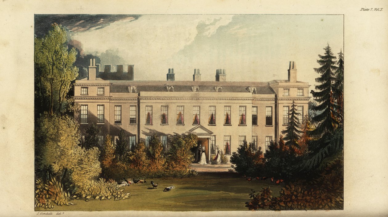 aristocracy · aristocrat · aristocraty · society · john gendall · cranburn lodge · cranbourne lodge · keeper's lodge · royal hunting grounds · cranbourne chase · sport · hunt · handcoloured · copperplate engraving · rudolph ackermann · repository of arts · regency · stately home · architecture · landed gentry · / Bridgeman Images |