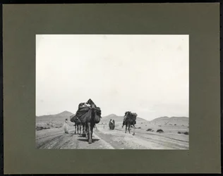 b w photo · black and white photograph · camel · camels · track · road · path · african · desert · c19th · c20th · arid · Museum of the City of New York, USA / Bridgeman Images