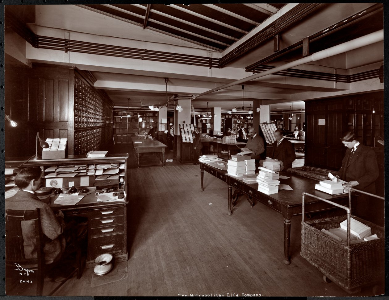 Men working in a sorting room at the Metropolitan Life Insurance Co. at 23rd Street and Madison Avenue, New York, 1907(Men working in what appears to be a sorting room at the Metropolitan Life Insurance Co. at 23rd Street and Madison Avenue, New York, 1907 (silver gelatin print))Byron Company |