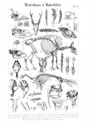 19th century · germany · europe · anatomy · animal · skull · skeleton · elephant · hippopotamus · natural history · many animals · rhino · zoology · black and white · lithograph · print · mzengraving · zoological plate · / Bridgeman Images