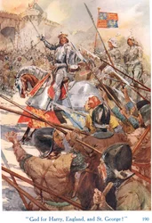 armour · battle · flag · arrow · weapon · royalty · sword · flag · hayteley field · monarchy · horses · pike · crossbow · shield · battle of shrewsbury · henry iv · Private Collection / Bridgeman Images · / Look and Learn