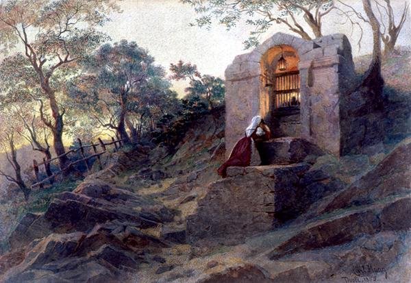 altar · praying · rural · italian · shrine · prayer · rocky · painting · mzpainting · Private Collection / Bridgeman Images |