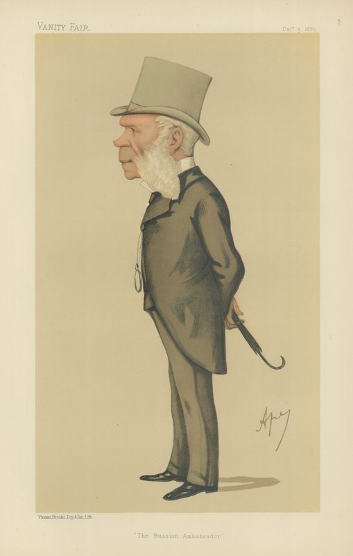 caricature · baron de staal · russian ambassador · 5 december 1885 · vanity fair · cartoon · Private Collection / Bridgeman Images · / Look and Learn