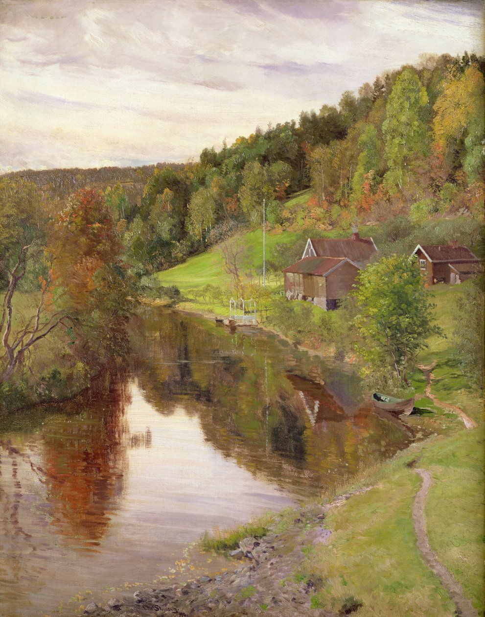 reflection · norway · woods · path · lake · pond · Private Collection / Bridgeman Images |