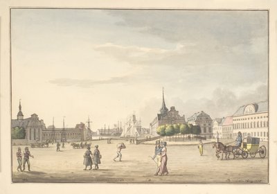 The Square in Copenhagen with Holmen's Church, the Stock Exchange, the Now Disappeared Bank and Chancellery Building ("The Red Building")(Slotspladsen i København med Holmens kirke, Børsen, den nu forsvundne bank og kancellibygning ("Den røde bygning"))Christoffer Wilhelm Eckersberg |