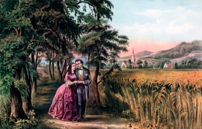 countryside · season · field · female · women · woman · people · male · young · summer · love · couple · youth · corn · wheat · life · color · colour · rustic · location · century · lady · concept · lover · 19th century · life cycle · nineteenth century · rural · rural life · aging · currier and ives · currier ives · The Print Collector/Heritage Images