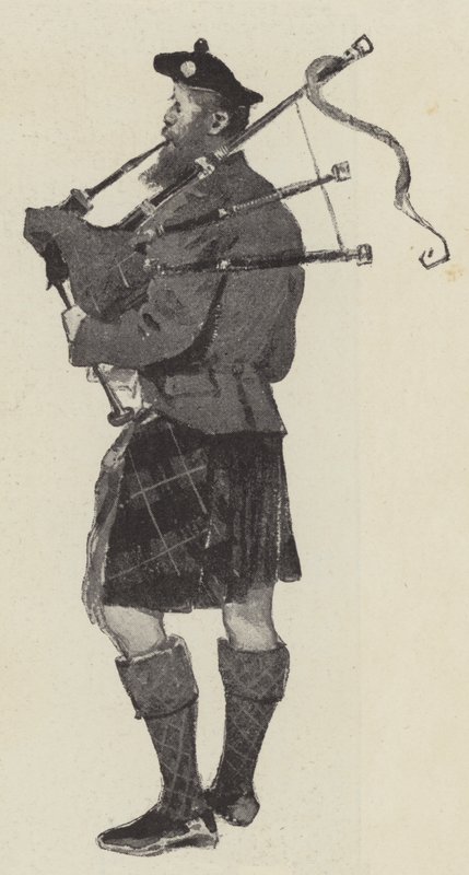 a rose of glenbogie · bret harte · bagpipes · literary illustrations · Private Collection / Bridgeman Images · / Look and Learn |