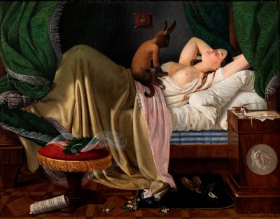 19th century · fantastic creature · nightmare · bedroom · house · housing · colour · woman · furniture · painting · dream · sleep · bedside table · one person · oil painting · mzpainting · demon · · Nivaagaards Malerisamling, Niva, Denmark / Bridgeman Images