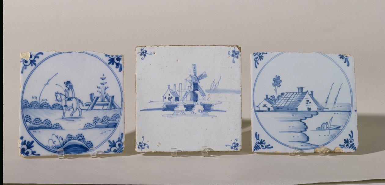 tile · holland · windmill · horse · rider · riding · house · lake · fishing · boat · glaze · pottery · ceramic · Netherlands · Collection of the New-York Historical Society, USA / Bridgeman Images |