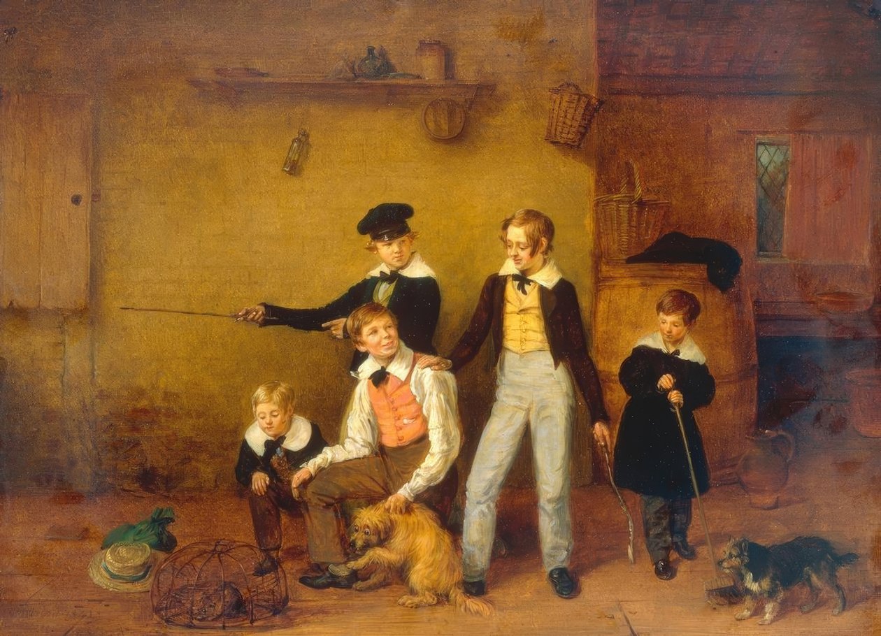english · genre · group picture · child · infant · animal · child life · children · rat trap · game · scene · animal · Victorian · art · Boys · Pets · / akg-images |