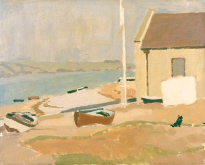transport · transportation · outdoors · scenic · building · buildings · house · boat · boats · painting · coastal · wales · remote · geography · color · colour · rustic · rowing boat · concept · lifeboat · water transport · rural · carmarthenshire · geographical feature · lifeboat station · oil on canvas · rural life · landscape · national museum cardiff · kay kays · edward morland lewis · lewis · edward morland · ferryside · st ishmael · National Museum of Wales/Heritage-Images