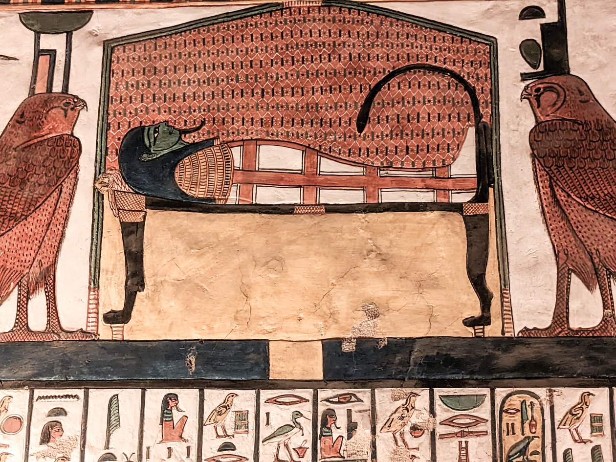 antiquity · antique · antiquit · arts · decorative arts · art movement · colour · colours · color · coloured · colors · colorfull · colored · decoration · decorated · decorative · ornate · ornamental · goddess · goddesses · deity · diety · divinity · divine · heavenly · divinities · heavenly father · diefication · deified · ancient egypt · egypt · egyptian · egyptians · egyptian · africa · african · africans · africa african africans · afica · afric · central africa · north africa · northafrica · north-west africa · north-east africa · north west africa · falcon · bird of prey · bird · birds · sea bird · fowls · animal · animals · wildlife animals · wildlife · wild life · several animals · fresco · murals · wall painting · mural · ceiling fresco · ceiling painting · frescoed · mural paintings · wall fresco · wall paintings · fresco painting · frescos · frescoes · painting · paint · paintings · painting: · funeral · burial · obseque · funeral service · funeral march · funeral obsequies · a funeral · luxor · mummy · mummify · mummification · egyptian mummy · embalmed body · embalmed · mummy case · wall · walls · tomb · tombs · grave · tombstones · crypts · tomb stones · sepulchre · sepulchres · headstones · gravestone · grave stone · graves · gravestones · funeral art · funerary art · funeral monument · 12th century bc · xiith century bc · 13th century bc · XIIIth century bc · · Valley of the Queens, Thebes, Egypt / Bridgeman Images |