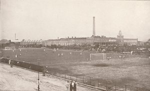 association football · soccer · player · team · match · pitch · playing · sport · spectators · fans · supporters · terraces · crowd · victorian · The Illustrated London News Picture Library, London, UK / Bridgeman Images |